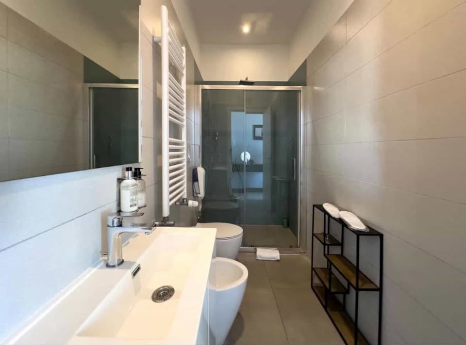 Camera singola con letto matrimoniale, bagno privato con doccia, aria condizionata, WiFi gratuito, frigorifero e macchina da caffè.