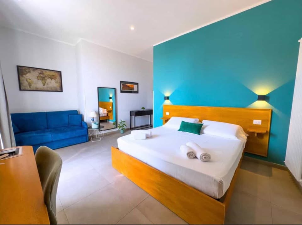 Camera tripla con letto matrimoniale e un letto singolo, ideale per famiglie o piccoli gruppi. Bagno privato e tutti i comfort.